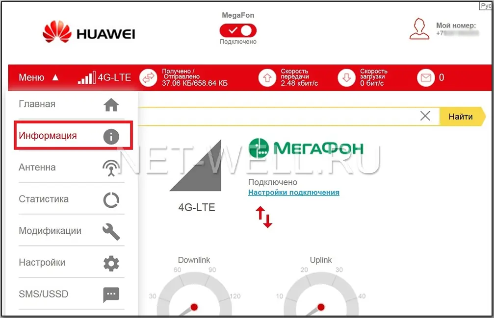 Где увидеть уровень сигнала, шумы и диапазон в huawei e3372h.