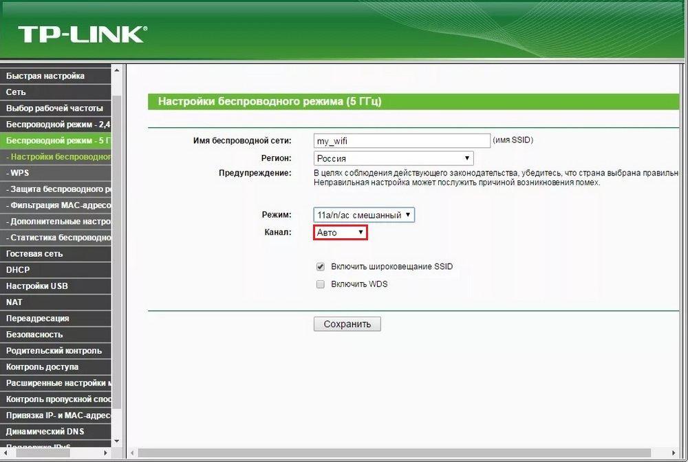 В том случае, когда сетевой адаптер Вай-Фай не видит только беспроводную сеть внутри вашего дома, а другие сети им определяются, надо будет попробовать изменить радиоканал, на котором идет трансляция радиосигнала. Нужно будет войти в админку роутера и открыть пункт «Беспроводной режим». Далее необходимо выбрать в установках роутера любой один радиоканал из имеющихся. Ниже для примера приведена картинка раздела «Беспроводной режим» веб-интерфейса роутера ТП-Линк.