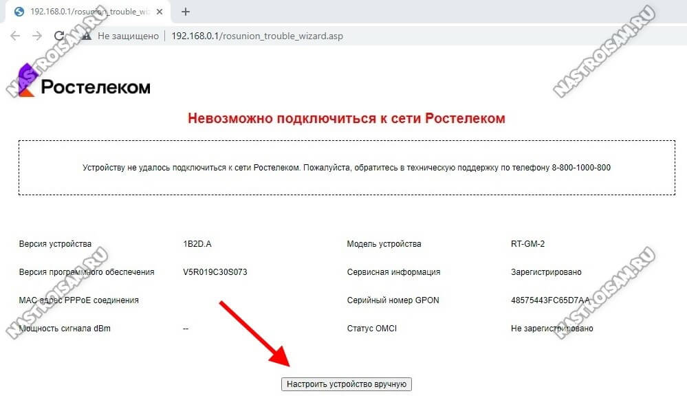 Нажмите кнопку «Настроить устройство вручную» и перейдите на стартовую страницу веб-интерфейса роутера.