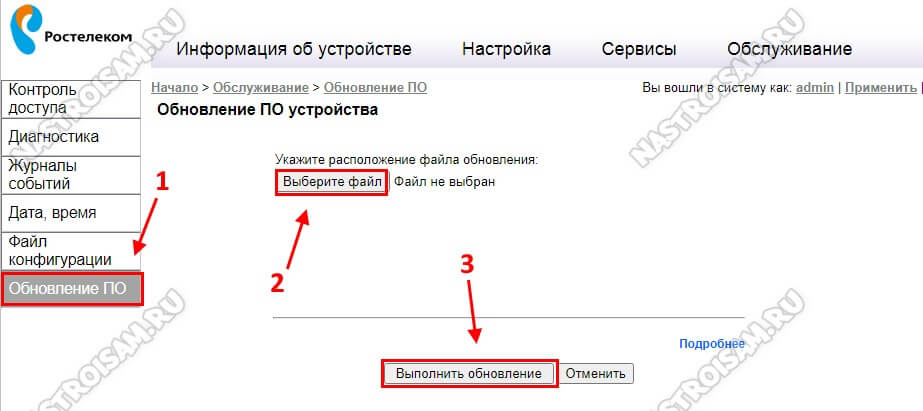 На любых сетевых устройствах, в том числе и роутеры Ростелеком, рекомендуется регулярно обновлять программное обеспечение.