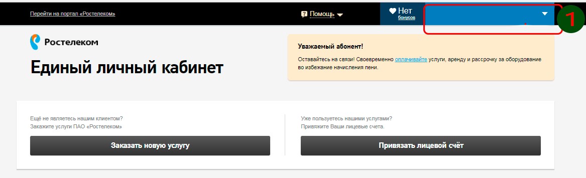 - Зайдите на главную страницу личного кабинета. В верхнем углу справа найдите свой логин – нажмите на расположенную рядом с ним стрелочку