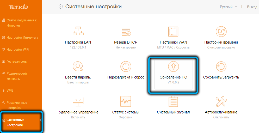 Поскольку интерфейс административной панели роутера позволяет производить обновление firmware в автоматическом режиме, особых проблем с этим возникнуть не должно. Данная функция доступна во вкладке «Системные настройки» в разделе «Обновление ПО» (кнопка Online-обновление).