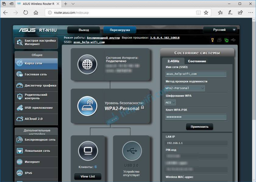 Готово, вы на главной странице панели роутера, где собрана вся информация о нем и можно его настраивать.