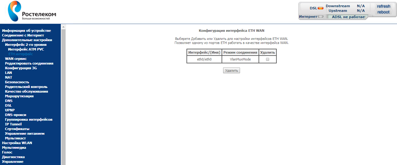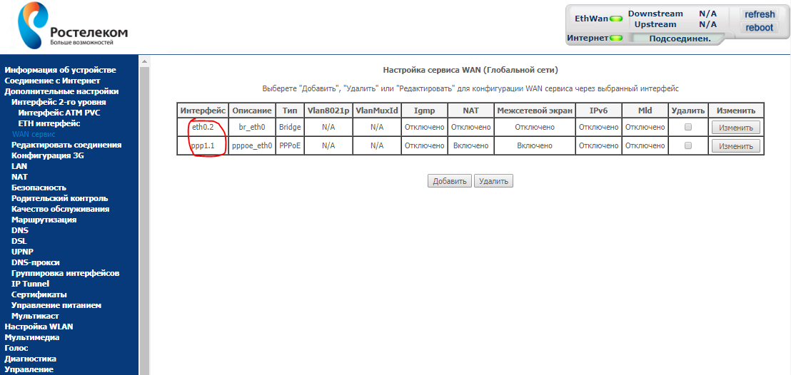 В результате в правом окне останутся две записи – WAN0 и LAN4.