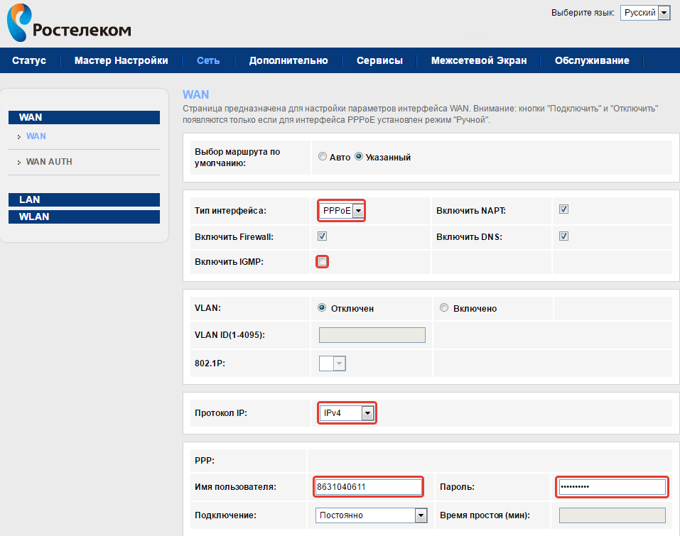Настройка PPPoE на Sagemcom F@ST 1744 v2