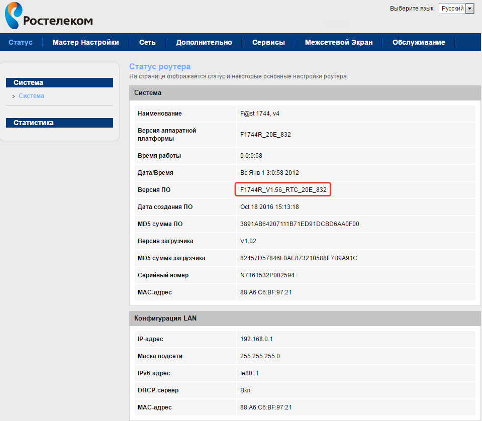 Скачиваются обновленные прошивки роутеров Ростелеком с сайтов производителей при помощи размещенной там ссылки. На компьютере прописывается IP адрес 192.168.1.2 или 192.168.0.2. В веб-интерфейсе нужно найти раздел «Дополнительные настройки». Он может называться «Система» или «Администрирование».