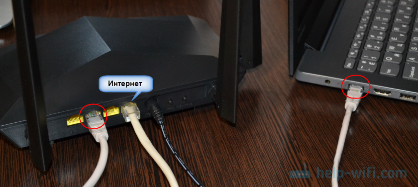 Сначала нужно установить маршрутизатор и все подключить. Подключаем адаптер питания к Tenda AC6 и включаем его в розетку. Интернет (кабель от провайдера, или от модема) нужно подключить в порт, который подписан WAN. Если у вас есть компьютер/ноутбук, то с помощью сетевого кабеля (он идет с роутером) соединяем его с рутером (в порт LAN, который под номером 1 или 2) .