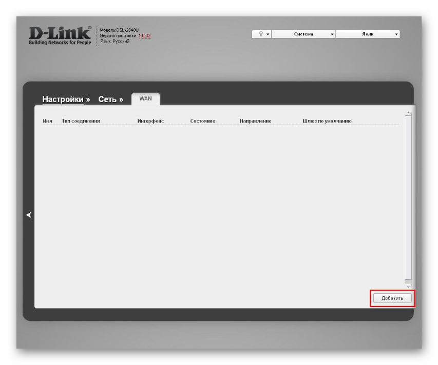 Если здесь уже созданы какие-либо соединения (кроме соединения LAN) – их необходимо удалить, после чего нажать кнопку «Добавить».