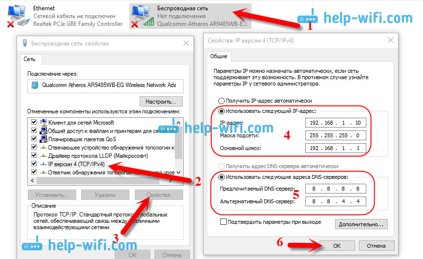 Настройка IP и DNS адресов в Windows 10 при проблемах с интернетом