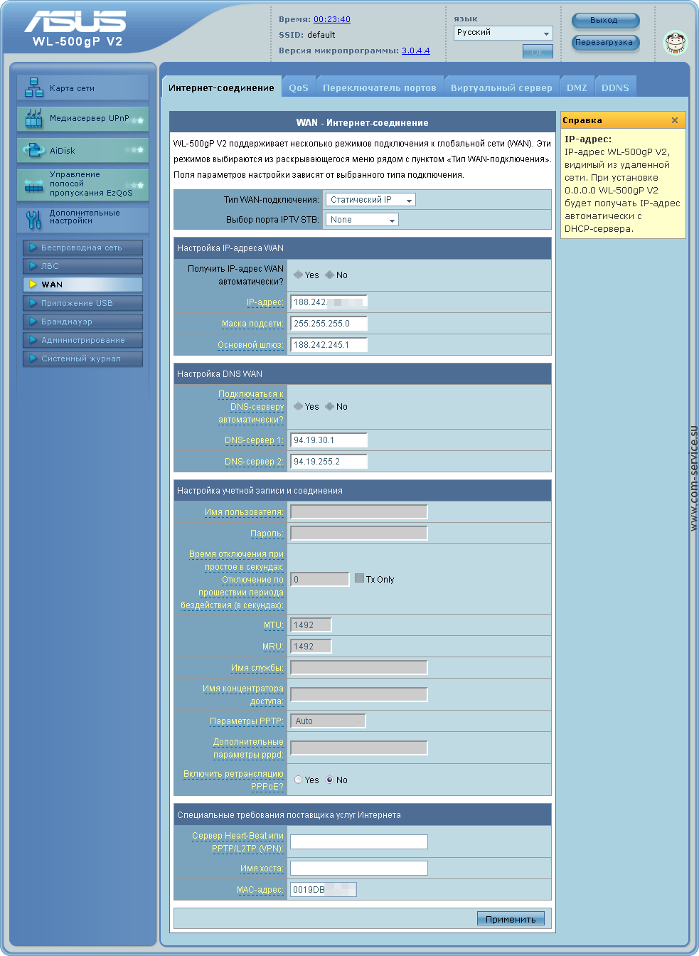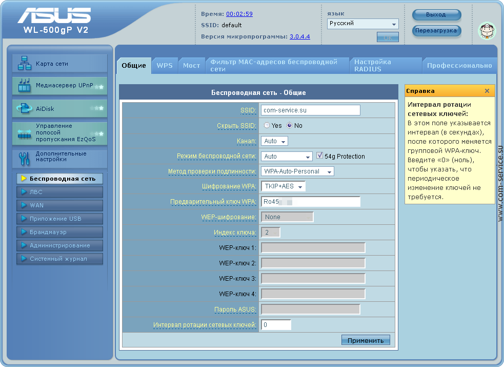 Настройка Wi-Fi (беспроводной сети) ASUS WL-500gP V2