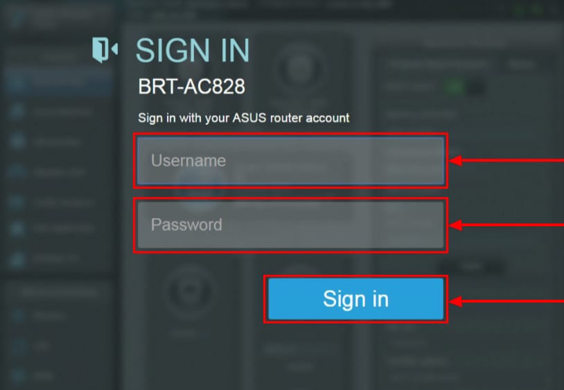 Здесь нам нужно авторизоваться. По умолчанию на всех асусах используется логин admin. Заводской пароль, который идёт изначально и возвращается после сброса настроек кнопкой «Ресет» — admin.