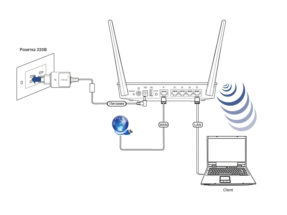 Определившись с моделью, необходимо подключить wi-fi роутер Asus к компьютеру.