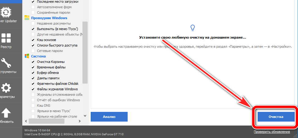 Одна из самых популярных программ с большим функционалом. Наверняка большинство из вас о ней слышали – её используют не только для очистки буфера обмена, но и для оптимизации всей системы. Советуем вам время от времени прибегать к её помощи. Если хотите только очистить буфер обмена с помощью Клинера, то порядок действий таков: