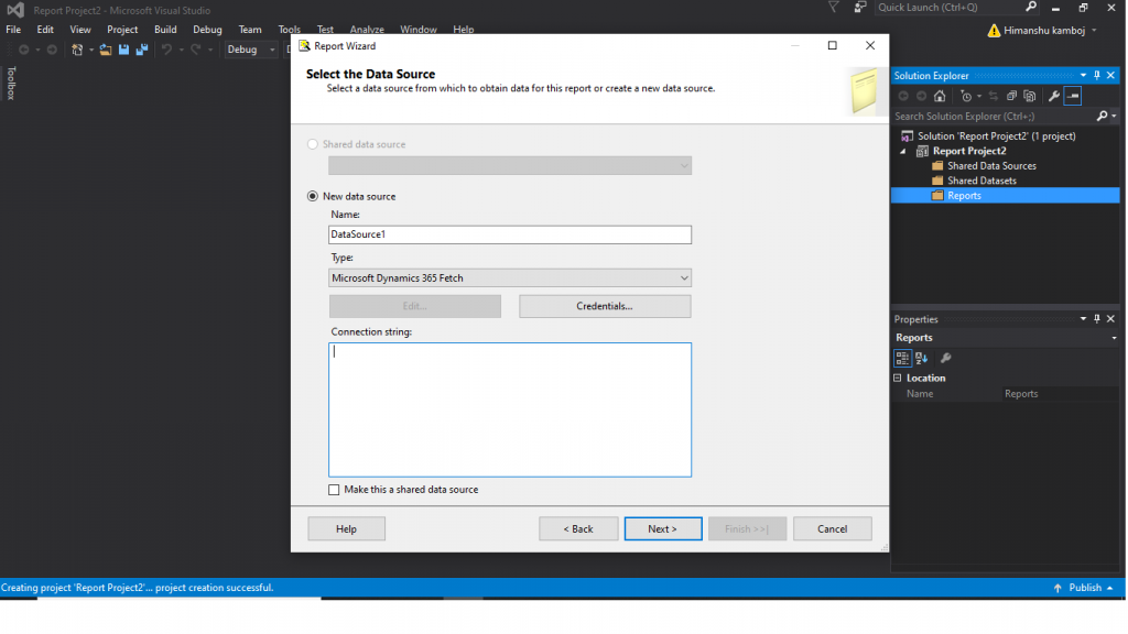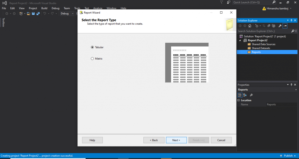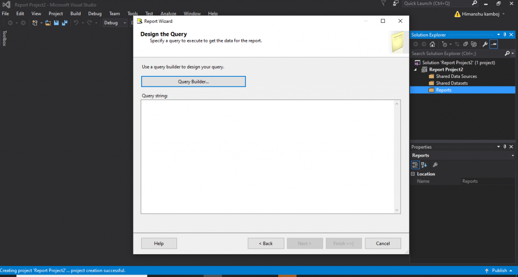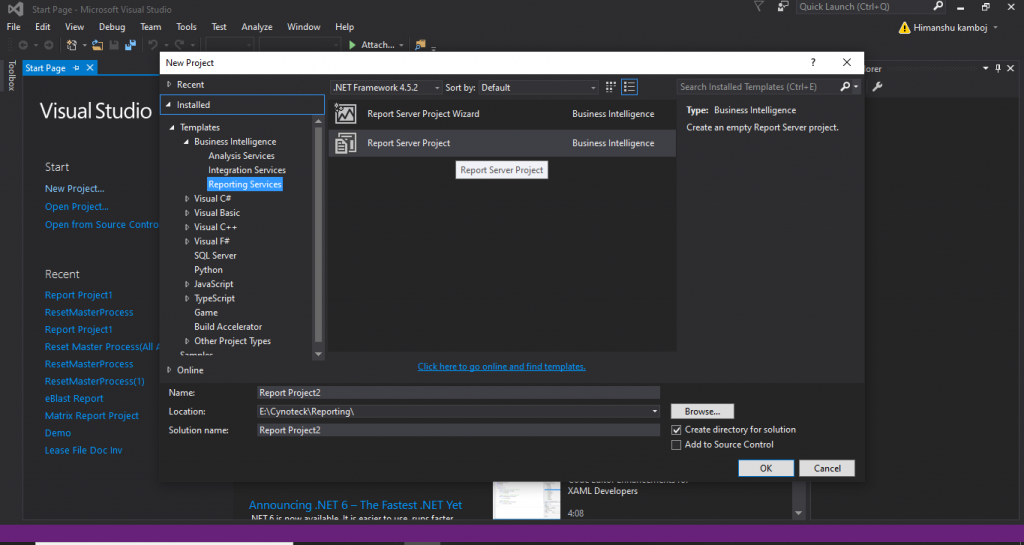 Click on the Reporting services under the Business Intelligence Section and select the Report Server Project Wizard. You can select the location by clicking on the browse option, to which location you want to save the reporting project.