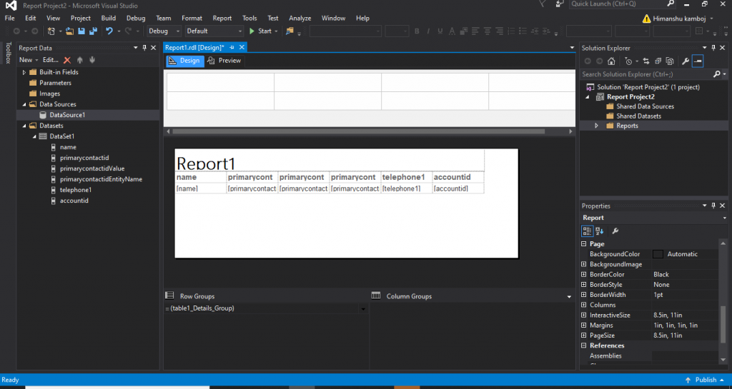 Table – A table is defined as a data region that shows data row by row. It has static columns: when you design your report, you determine the number of columns. The table has dynamic rows: they expand downwards to accommodate the data.