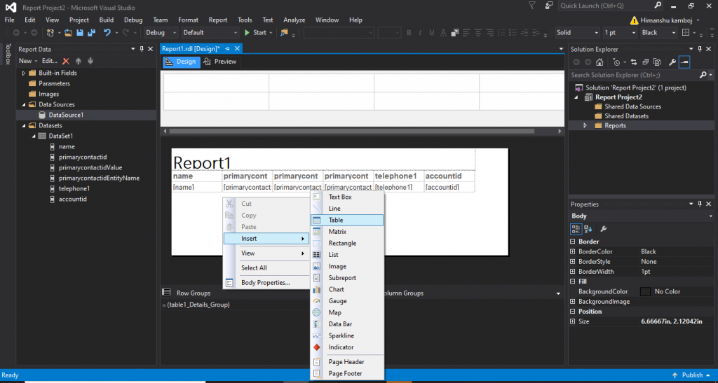 If you want to use more features of the report, then you can right-click on the screen and can insert the items according to you.