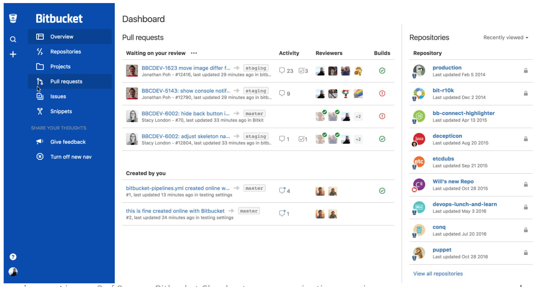 Bitbucket is one of today’s three famous GIT version control systems. Originally launched in 2008,in 2010 the service was acquired by Atlassian. Atlassian is quite famous among corporations for organizing tools like Trello, Jira, and Confluence. Not having as many features as GitLab or GitHub, Bitbucket attracts companies with seamless integrations due to its parent company.