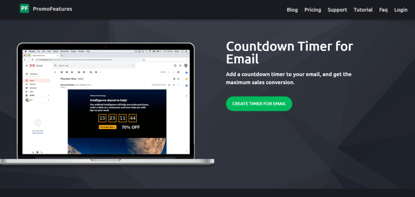 Promofeatures – сервис для создания таймеров, которые можно использовать как в рассылках, так и на сайте. С его помощью вы можете бесплатно сделать счетчик, однако в таком случае он будет выводиться с водяным знаком компании. Чтобы его убрать, необходимо будет оплатить тариф от $6.99 в месяц.