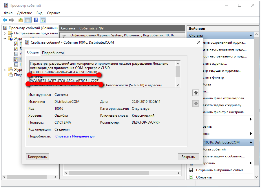 Шаг 1. Прежде всего должны отсортировать процесс или службу, связанную с кодом ошибки 10016. Далее вы найдете описание ошибки чуть ниже во вкладке «общие» или «подробности». Из описания скопируйте CLSID. Он может выглядеть как