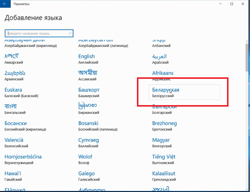 Из появившегося списка выберите нужный вам язык и соответственно его клавиатуру