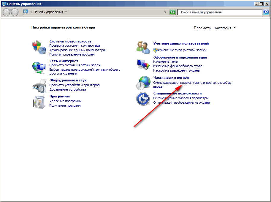 и выбираем “Смена раскладки клавиатуры или других способов ввода