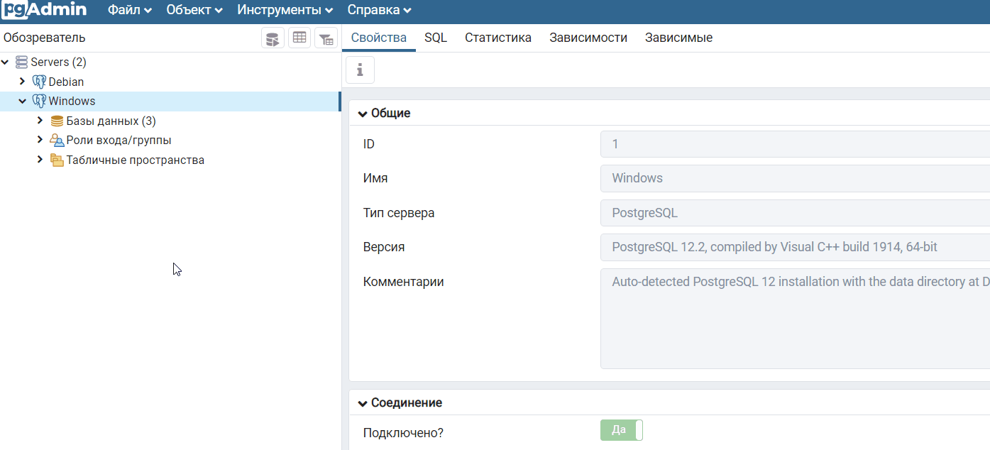 Заходим в pgAdmin и наблюдаем там импортированную БД: