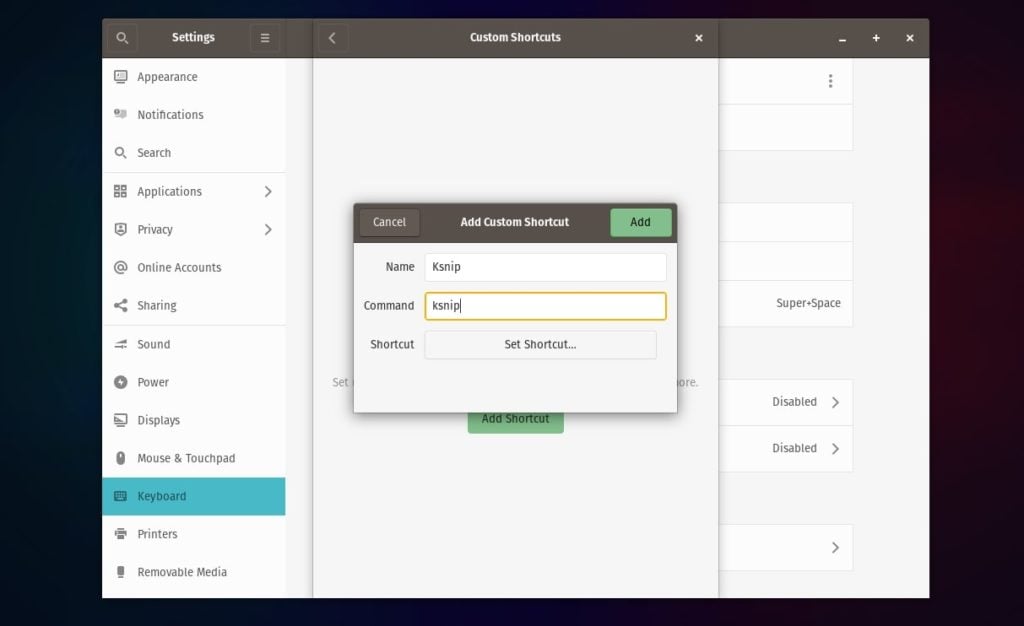 One of the easiest ways to access these Linux screenshot apps is by using custom keyboard shortcuts. For starters, GNOME allows you to add custom shortcut key combinations and map them to open applications. To start creating custom shortcuts, all you need to do is.