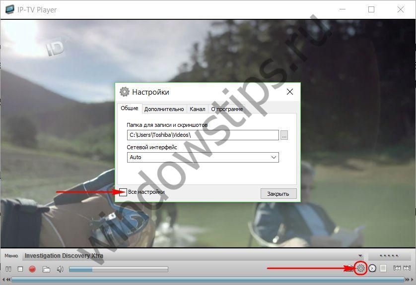 Как в дальнейшем сменить настроенный плейлист? Жмем кнопку настроек на панели инструментов IP-TV Player (или горячие клавиши Ctrl+P) и в появившемся окошке выставляем галочку отображения всех настроек.