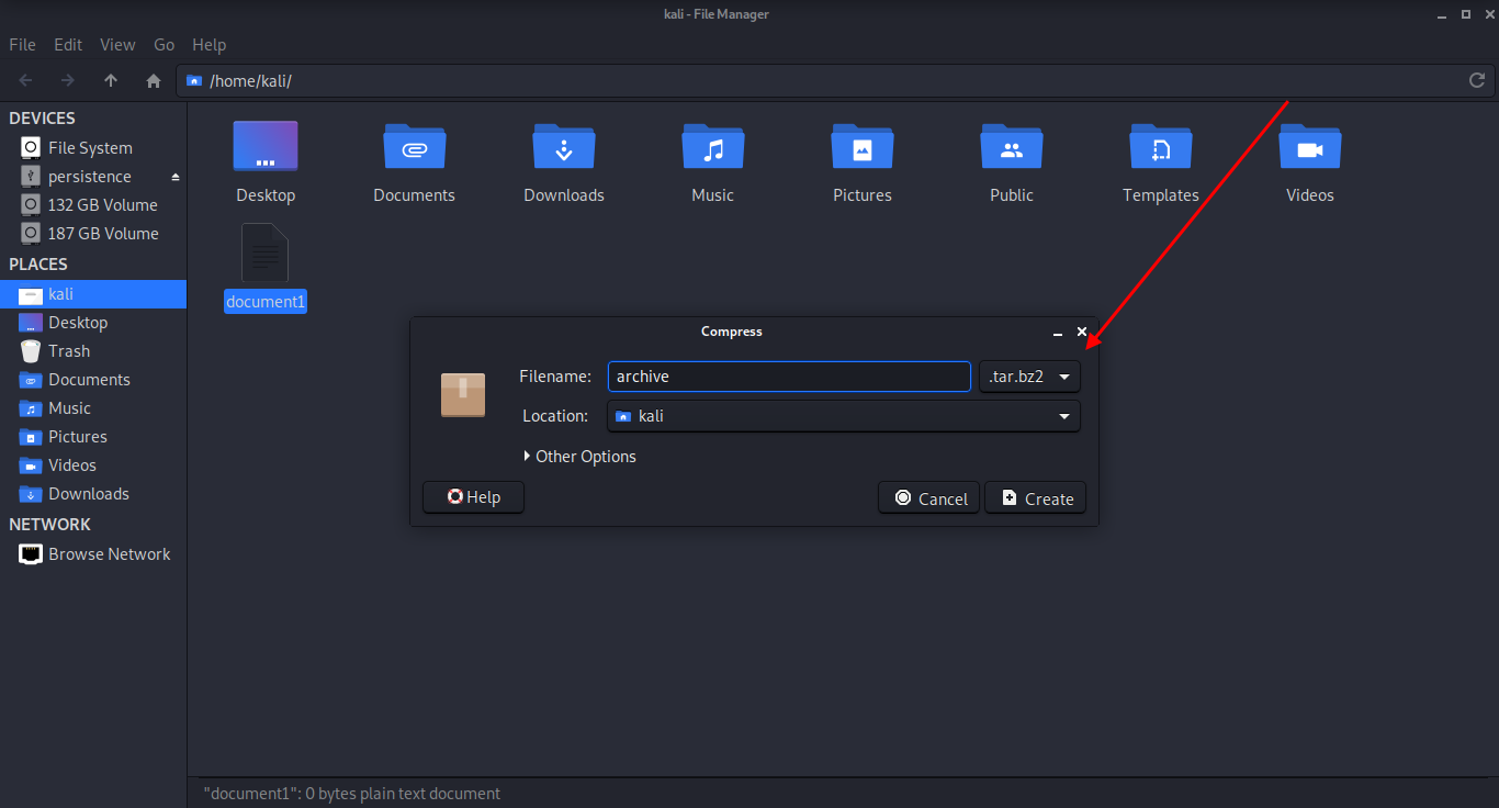 Ручной способ аналогичен созданию обычного архива, только необходимо указать расширение .tar.bz2 либо .tar.gz.