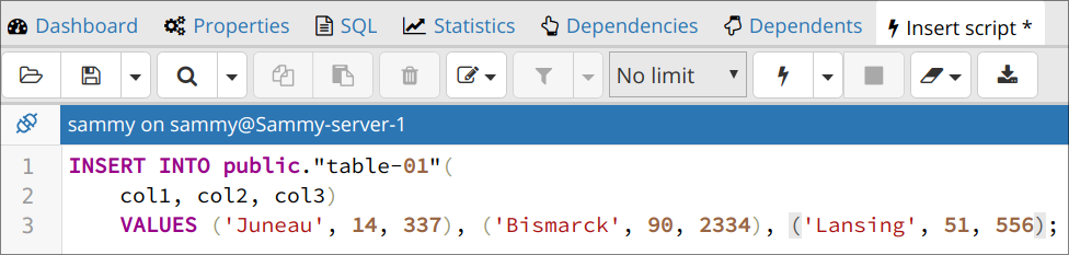 После того как столбцы определены, нам необходимо добавить значение по умолчанию для столбца category, а также определить ограничение внешнего ключа.
