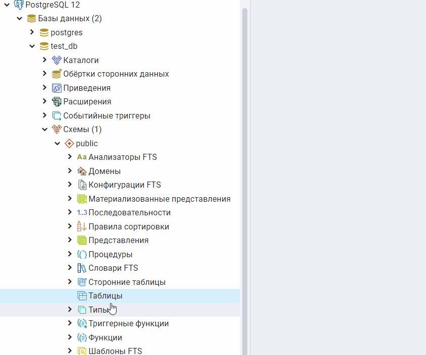 Чтобы создать таблицу в PostgreSQL с помощью графического конструктора pgAdmin 4, необходимо в обозревателе щёлкнуть правой кнопкой мыши по контейнеру «Таблицы» и выбрать пункт «Создать -> Таблицу».