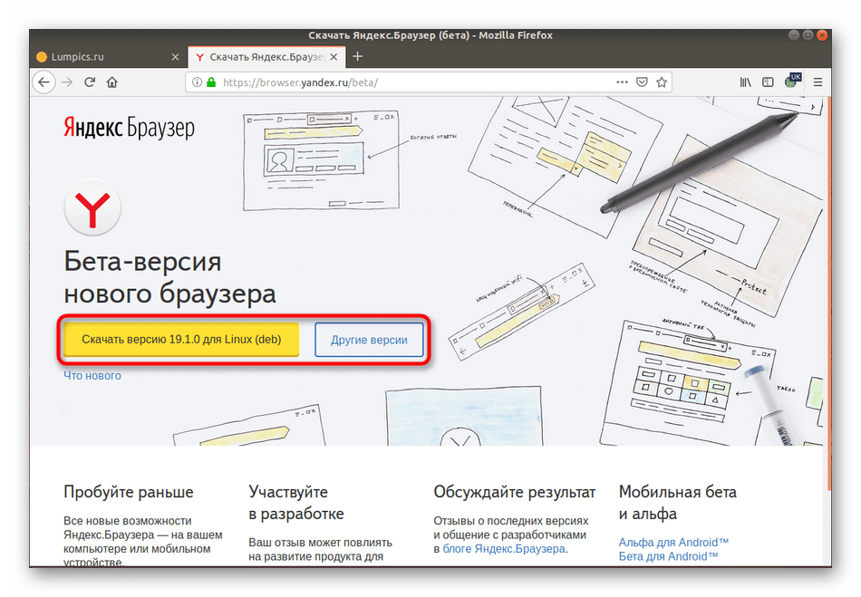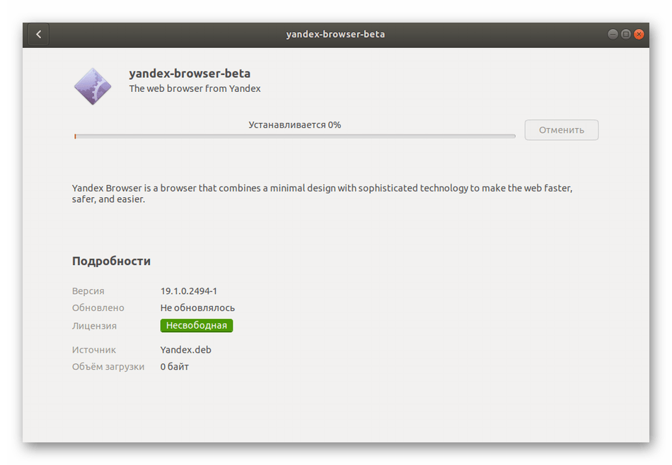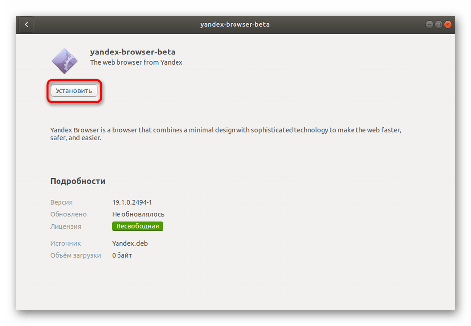 Установите загруженный на компьютер пакет через sudo apt install yandex-browser-beta .