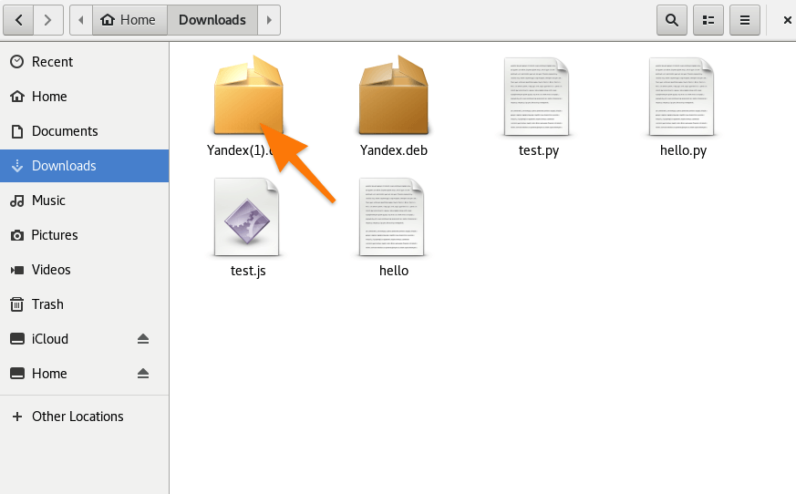 - Открываем файловый менеджер и ищем загруженный пакет с браузером.