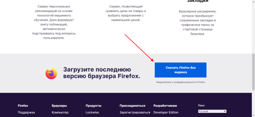 Скачиваем установщик Mozilla Firefox: