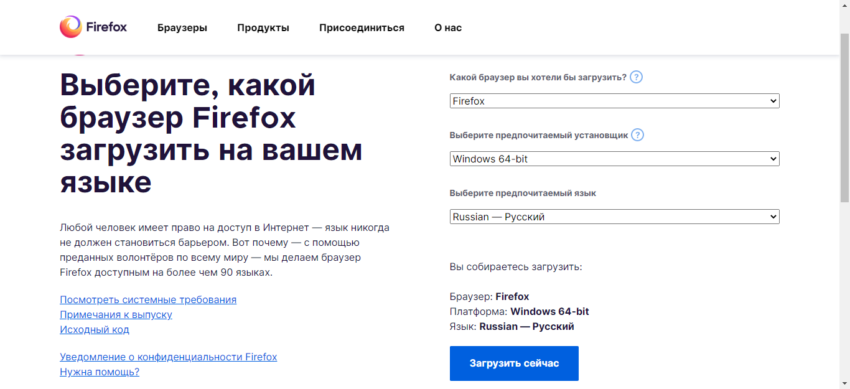 Последняя версия Firefox на русском языке доступна для загрузки по одной из соответствующих ссылок ниже (для Windows 32 или 64-бит).