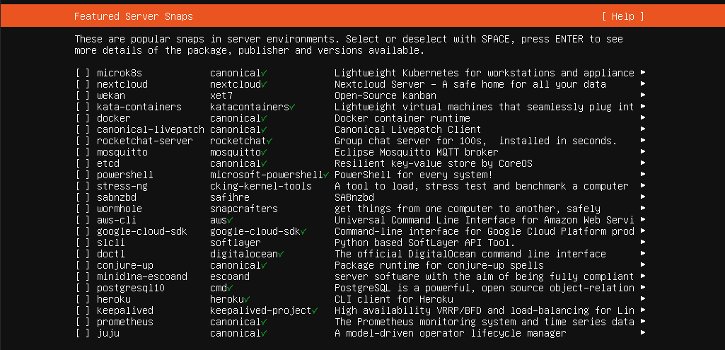 Дальше вам будет предложено установить OpenSSH server. Он нужен для того, чтобы подключаться к серверу по ssh. Я не представляю себе сервера, где бы это было не нужно, так что выбираем Install OpenSSH server.