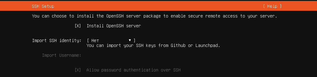 Тут же вы можете импортировать ssh ключ и запретить авторизацию по паролю. Я не вижу смысла делать это сейчас. Гораздо удобнее будет потом подключиться к серверу и настроить все, как надо. Первый раз можно будет зайти и по паролю.