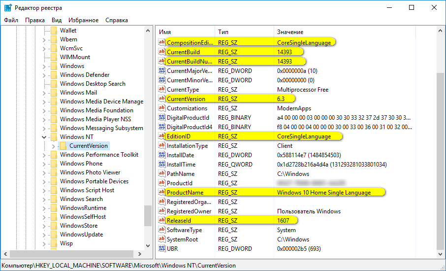 Проверять номер ОС и ее название можно даже в «Редакторе реестра»