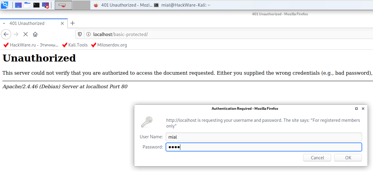 Как включить HTTP Basic аутентификацию в Apache (Kali Linux, Ubuntu, Debian, Linux Mint)