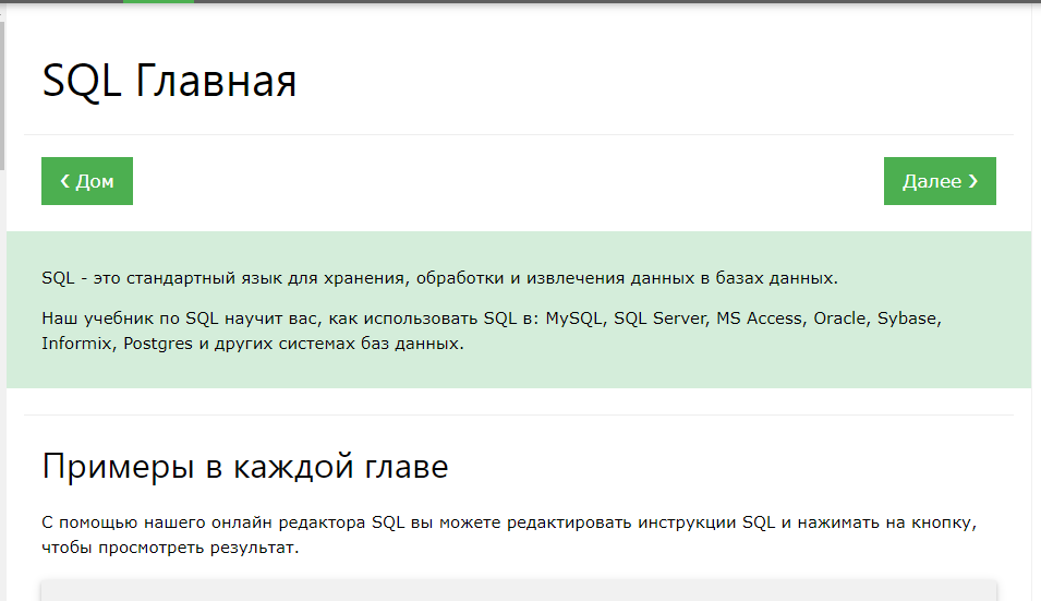 Существует синтаксис, запрос, объяснение запроса и графическое представление, чтобы помочь вам лучше понять концепции. Помимо этого у нас есть сотни упражнений с онлайн-редактором, викторины . Таким образом, вы можете практиковать концепции и запросы, не выходя из браузера.