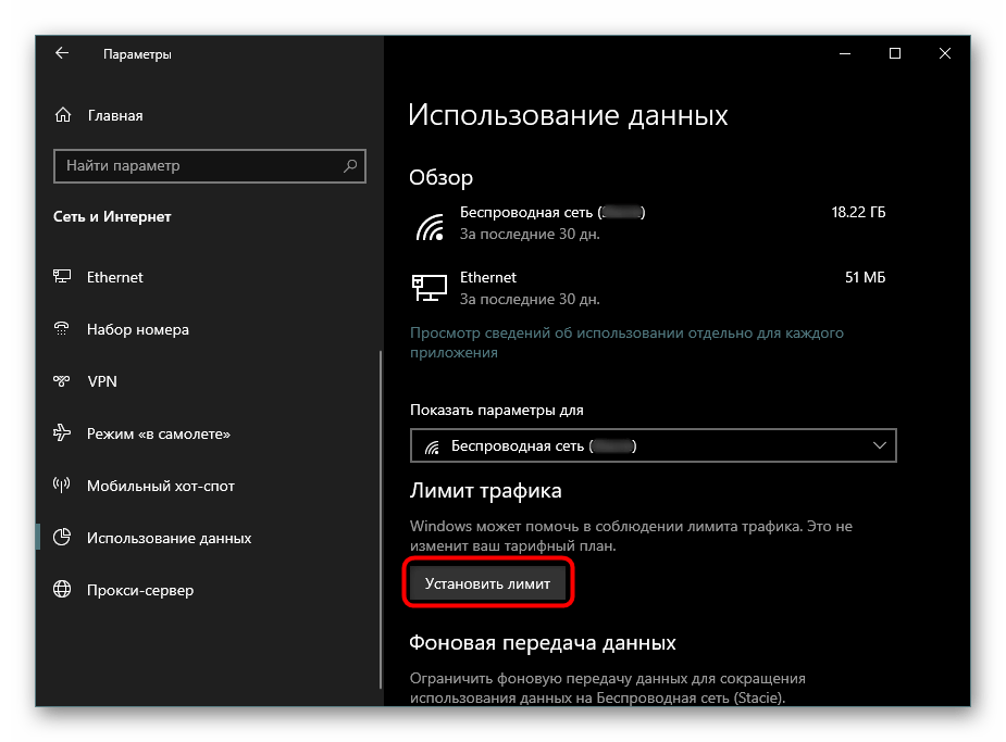 Настройка лимитных подключений в Windows 10