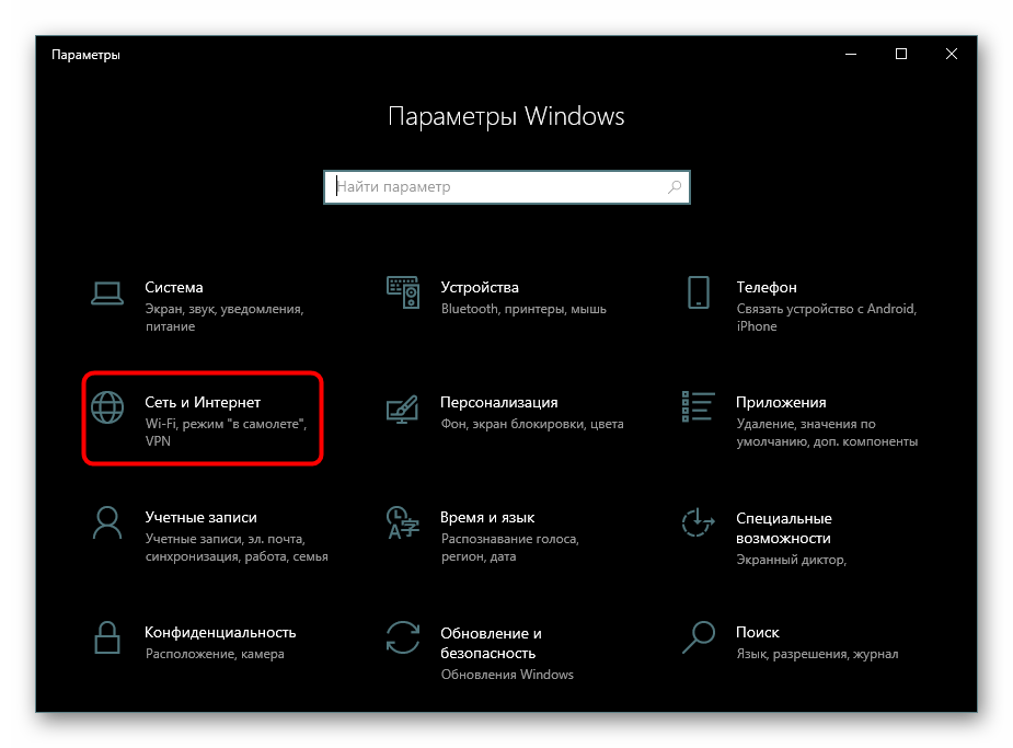 Кликните по плитке «Сеть и интернет»