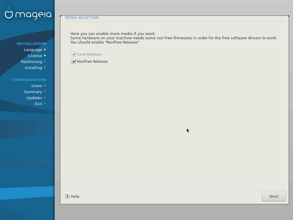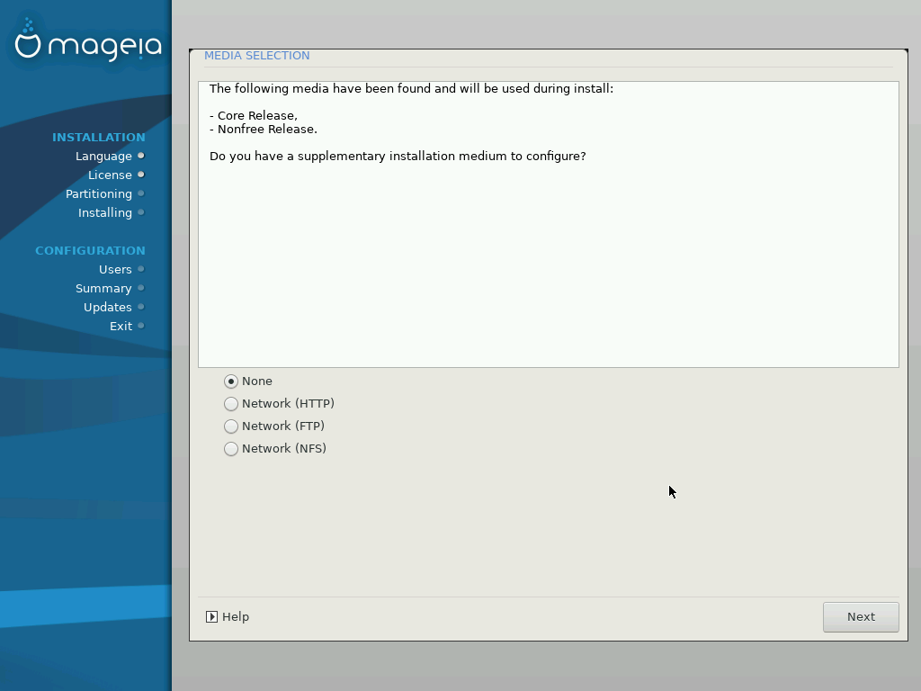 In this screen you can select more sources from which to obtain packages to install (repositories). If you’re a beginner or not interested (the local disk should suffice), you can just press Next.