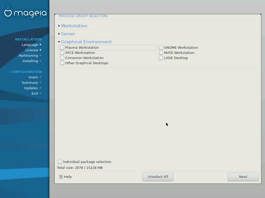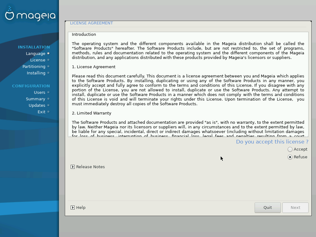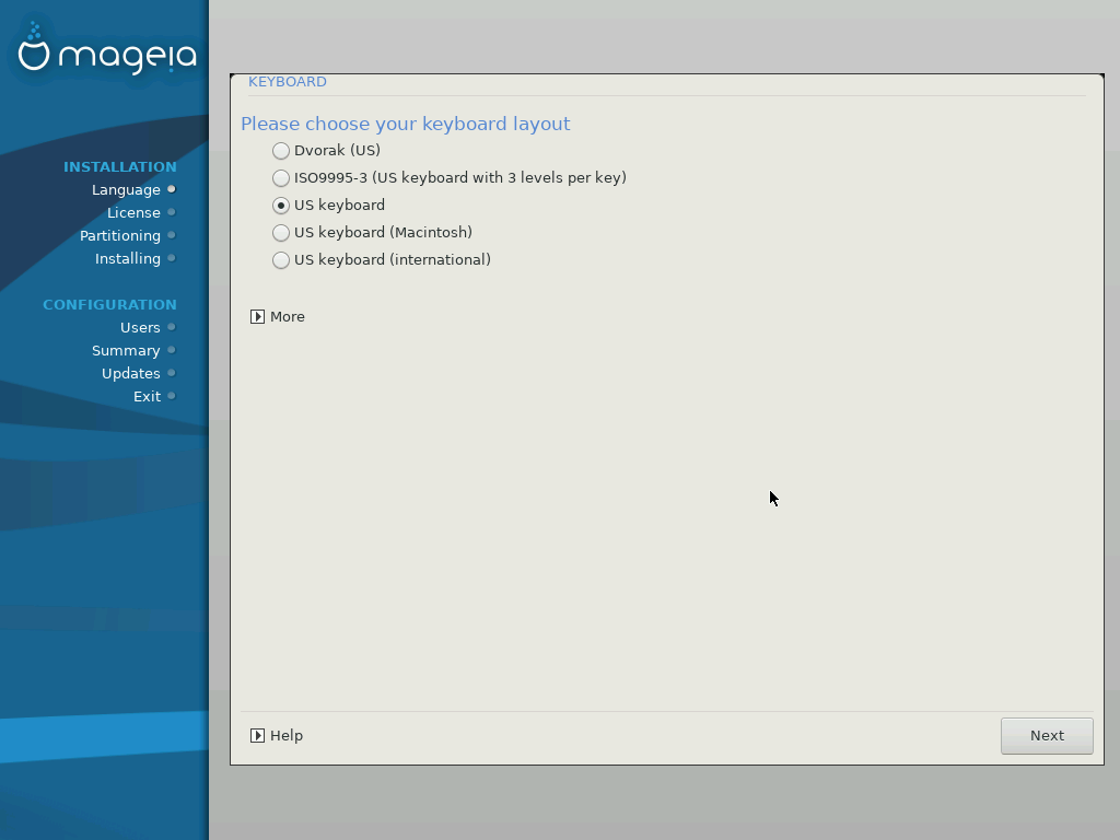 - Classic Installation: this image only allows to install Mageia and will have many packages bundled, this is useful if you need to perform the installation without Internet access.