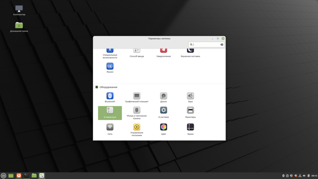 Начнем настройку пожалуй с раскладки клавиатуры, для этого переходим в настройки системы, далее находим параметр под названием “Клавиатура”: