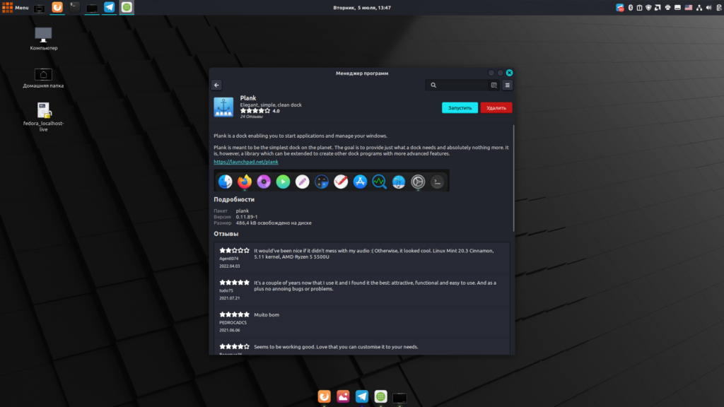 Как вы поняли, установку программного обеспечения можно производить как из терминала, так и из магазина приложений: