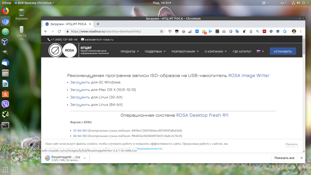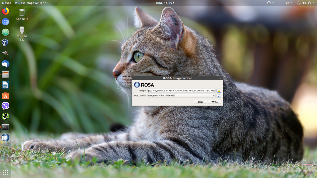 Для записи Rosa на флешку разработчики рекомендуют использовать утилиту RosaImageWriter. Скачать её можно на странице выбора редакции дистрибутива.