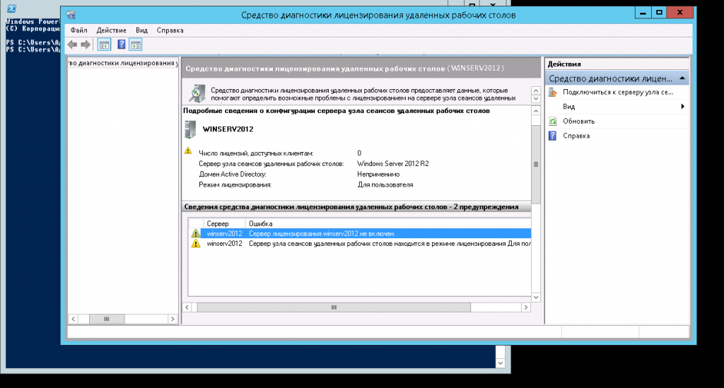 Рис. 14. Запуск средства диагностики лицензирования удаленных рабочих столов