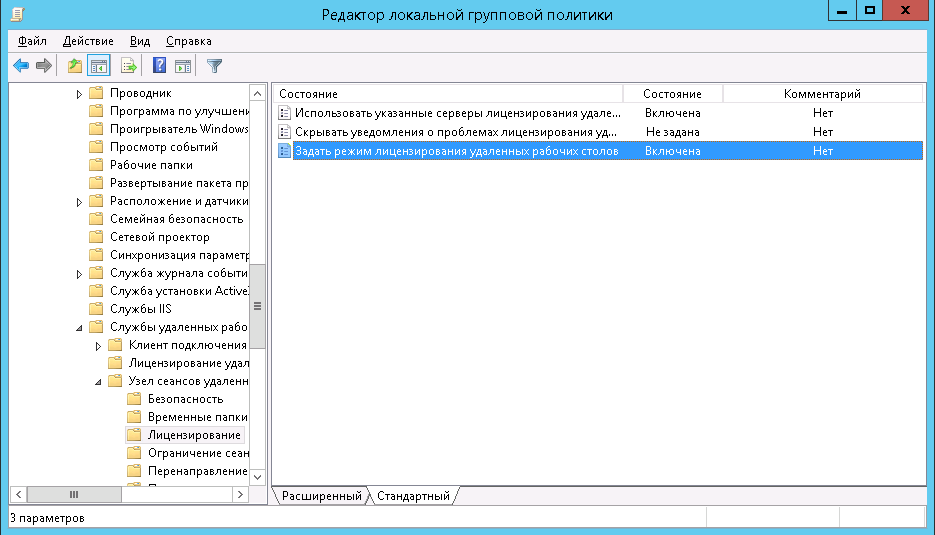 Перейдите в Конфигурация компьютера, Административные шаблоны, Компоненты Windows, Службы удаленных рабочих столов, Узел сеансов удаленных рабочих столов, Лицензирование (рис. 16).