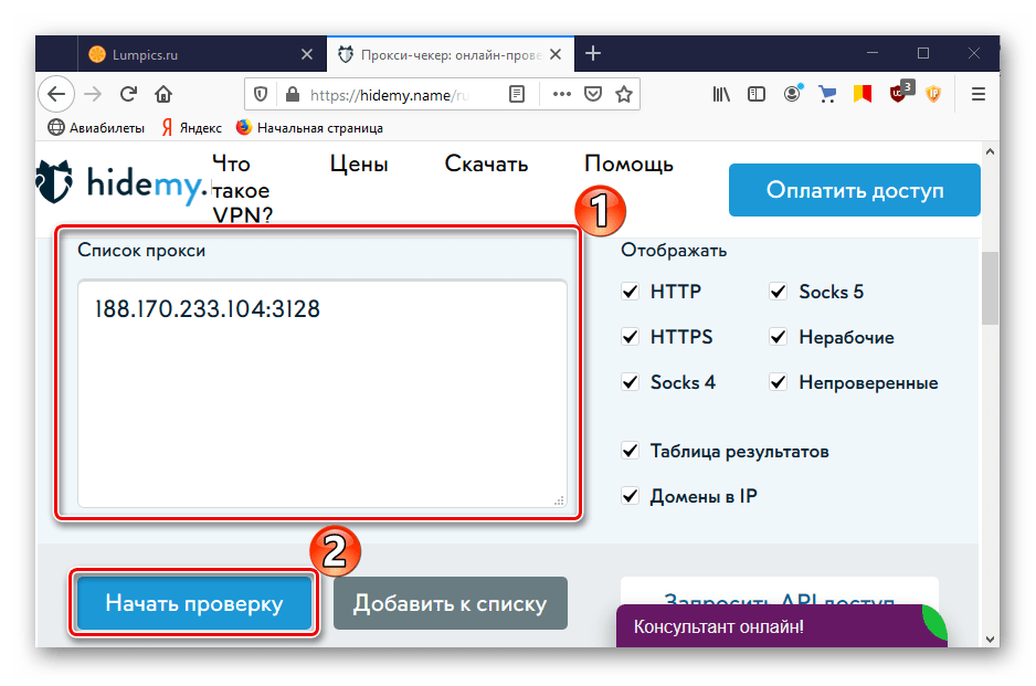 Администрация сайт HideMy.name сразу предупреждает, что не владеет этими proxy-серверами и не несет ответственности за их качество. Ресурс просто собирает бесплатные прокси с различных сайтов и форумов, поэтому даже при подтверждении их работоспособности проблемы не исключены. Например, для доступа могут потребоваться имя пользователя и пароль, которые никто не предоставит. В этом случае придется поискать другой рабочий вариант без авторизации либо воспользоваться ресурсами с платными прокси (Youproxy, Proxyseller и др.).